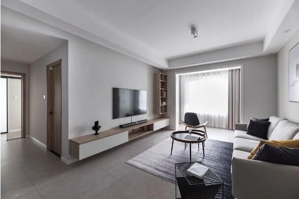 咸阳家装小编这次分享的是一套三居室案例,套内面积105㎡,鉴于屋主的生活方式,巧用中性色打造恬淡雅致的居家效果。 一切简简单单,看着舒适高级。舍弃落地式电视柜直接做悬挂式,空间显通透, 橙黄的抱枕融入其中成为点睛之笔,给空间带来一丝活泼感。 入户做嵌入式鞋...