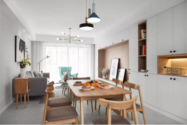 今天咸阳家装小编介绍的是一例温馨舒适的北欧风,一起来往下看看吧! 的端景台,客厅的沙发背景墙是刷上了简单的浅灰色,搭配相近颜色的茶几和地砖, 主卫采用玻璃隔断做了干湿分离,白色的大理石瓷砖避免了卫生间太过昏暗的问题。 书房这个空间是刷成了深蓝色...