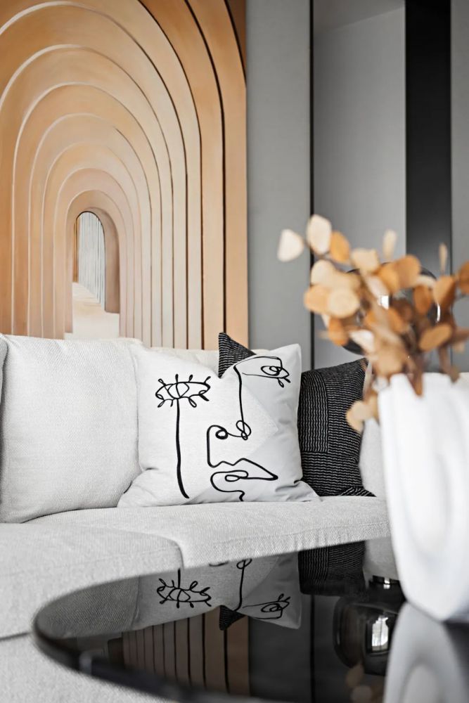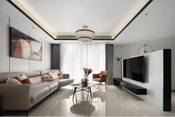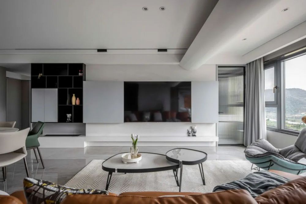 案例,简约不枯燥,干净又不廉价,下面我们就一起来开启存图模式吧! 玄关 进门左侧靠墙体定制出的摆放位置,线条塑造出空间的整齐有序。 换鞋凳由于选取的室内色调为白色,于是在硬装设计上,需要硬装造型除天花板的吊顶以外,沙发背景墙也做了, 采用一...