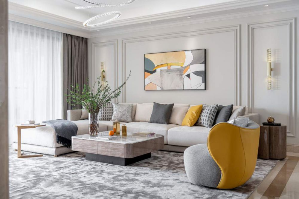 当空间有了光,爱便会悄然生长,直到长成理想中家的模样。设计施工团队:咸阳峰光无限装饰 客 厅 客厅线条优雅的水晶灯,以轻盈的姿态预告了夜晚的浪漫情调。对称而列的储物架充当书海里的配角,席地而坐翻弄书页也是一幅静美温柔的画面。 ...