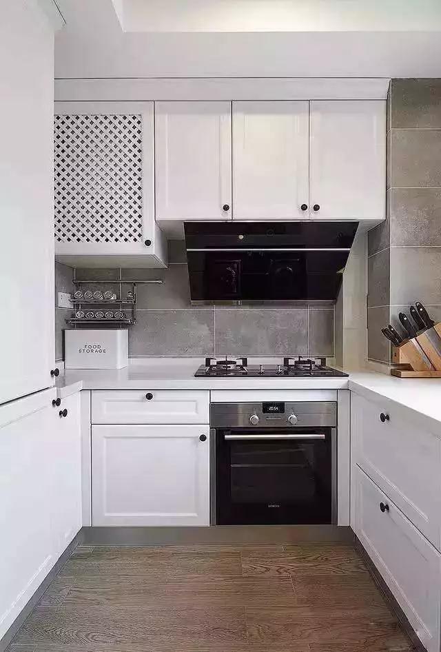 白色和木纹的组合厨房,适合现代简约、宜家北欧等风格。隐形拉手更简洁。 咸阳装饰公司精彩案例;来自优秀设计师!