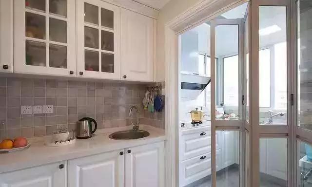 在户型改造的时候,扩大了厨房区域。用玻璃门分隔出西厨和中厨,隔离油烟增加储物空间。