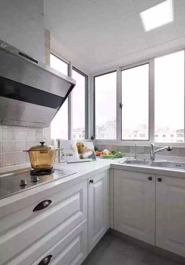 橱柜会根据厨房来设计布局,L形是最常见的一种。如果厨房空间不大,就要考虑是否把冰箱放在厨房。灶放在烟道附近,距离水槽之间的区域,是操作的黄金区域。