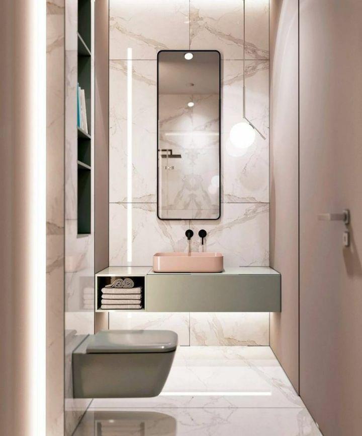 从字面上可以理解为挂在墙上的洗脸盆,非常节约空间。并且风格和形状多种多样,无论你是哪种风格的卫生间,壁挂式面盆都可以完美融合。喜欢壁挂面盆的小伙伴,最好选择墙排水,要不然裸露在外的管道,会破坏卫生间整体的美感。