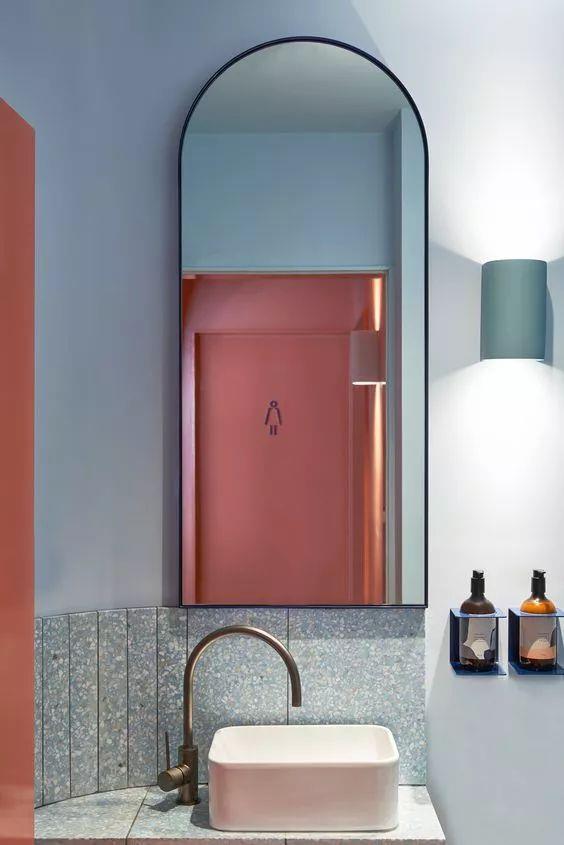 谁说卫生间墙壁一定要用白色才显得干净,地面一定要灰色才耐脏,要知道卫生间的色彩也可以灵动起来。