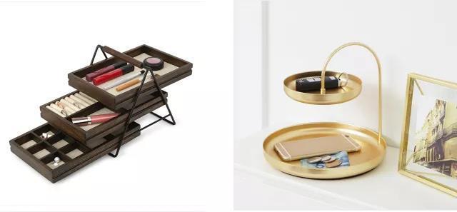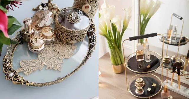 托盘能隔绝物品直接与台面的接触,不会让水渍堆积在瓶罐的底部并将洗漱用品收拢为一块,减少了摆放的杂乱,摩登质感的金属托盘更是时尚家居的好物品。
