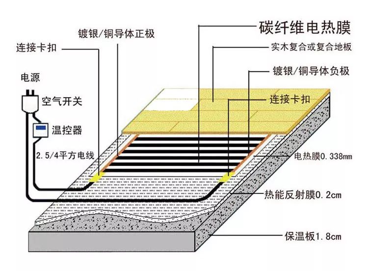 原理:转换电能为热媒,通过温控表来控制铺设区域温度的一种供热类型。