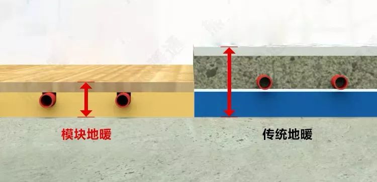 干式铺法是地暖盘管卡在已经连接好的片状模块里,不需要回填,安装简单、散热快,安装高度小热损失大,散热效果不佳。