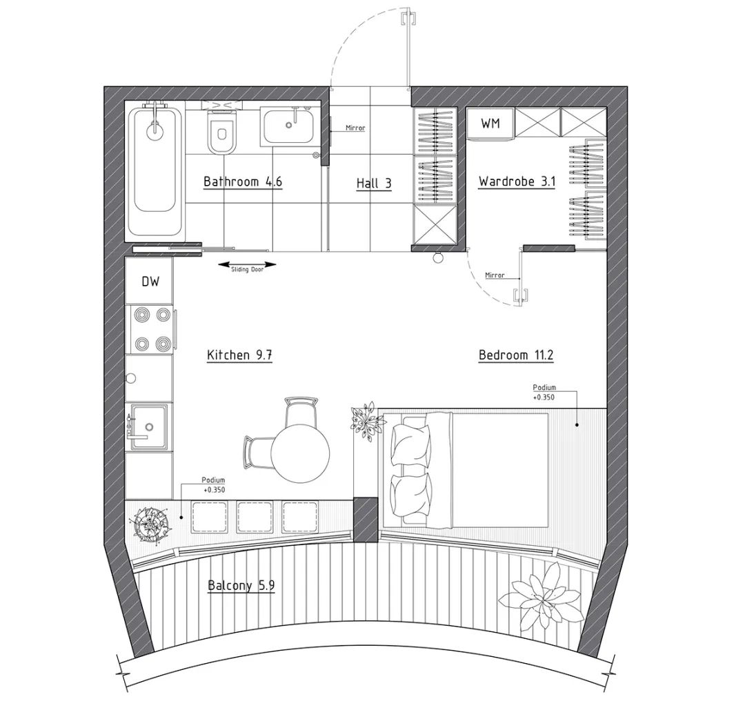 风光无限装饰设计团队新作,这个小户型住宅,面积为29.6㎡,别人家的小户型从来不会让我失望,这么一个小小的空间,卧室、衣帽间、厨房、卫生间,一个不少,还带了浴缸,真是绝了!