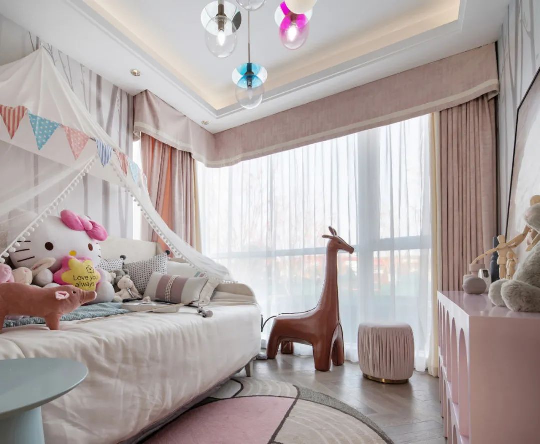 莫兰迪色系,它有不张扬的高级配色,却又雅致舒缓,甜而不腻,暖而不燥。粉色的墙面饰壁和挂画,让空间形成独特的围合效果,每一个细节都追求极致之美。