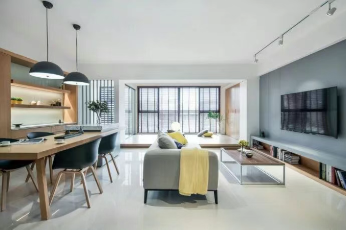 咸阳装修公司今天介绍的这是一套136㎡新房,装修上以现代简约为主色,以白、灰、木色、 灰蓝色为主调,打造通透统一的空间。客餐厅一体化、卧室静谧休憩、书房高效办公、 卫浴干湿分离,每一处设计兼顾美观与实用,让家成为治愈日常的温柔港湾。 整个客厅空间以浅色为...