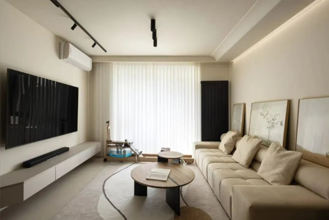 咸阳家装小编今日介绍的是最火奶油风,接下来带大家看一下。 整个客厅采光明朗,开阔柔和,以米白色为主色,氛围松弛舒适。悬浮式电视柜减少了地面的视觉压迫感,打扫卫生无死角。 沙发墙米白色的乳胶漆搭配亲肤浅米色的沙发,还有圆形的木质茶几,整体色调和谐统一,...
