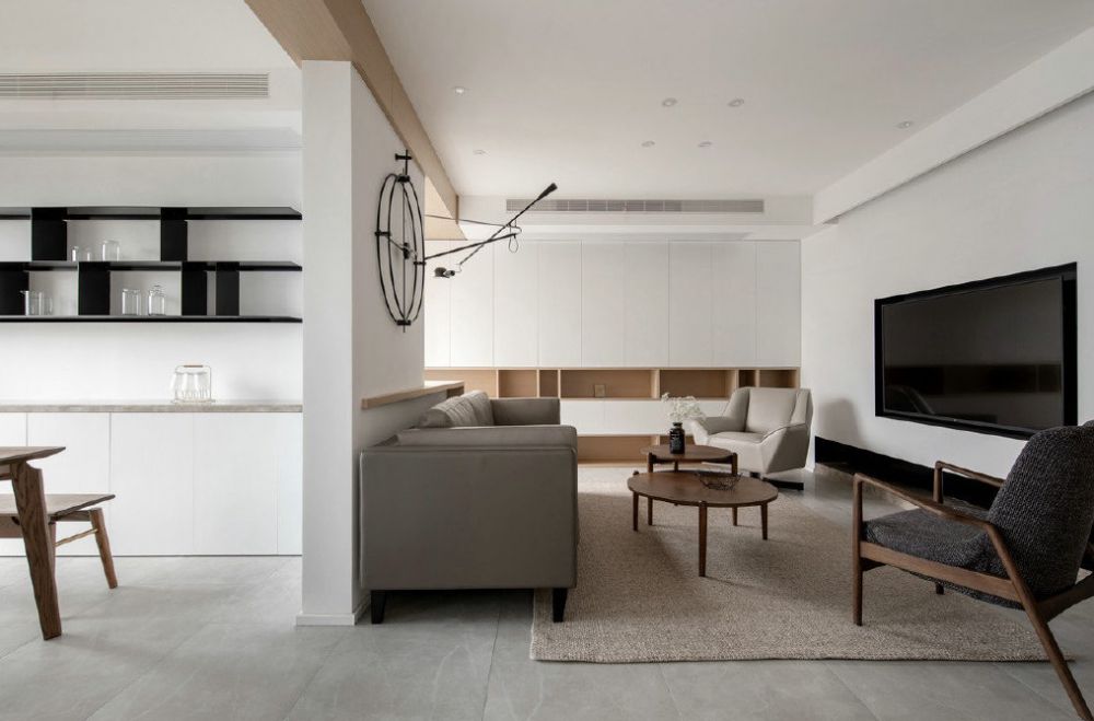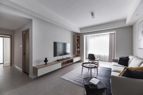 咸阳家装小编这次分享的是一套三居室案例,套内面积105㎡,鉴于屋主的生活方式,巧用中性色打造恬淡雅致的居家效果。 一切简简单单,看着舒适高级。舍弃落地式电视柜直接做悬挂式,空间显通透, 橙黄的抱枕融入其中成为点睛之笔,给空间带来一丝活泼感。 入户做嵌入...
