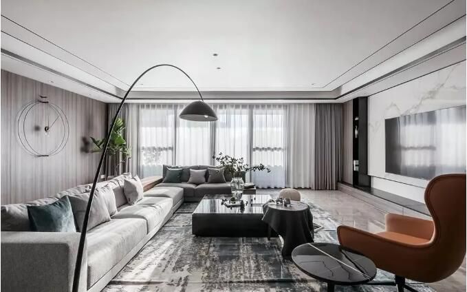 咸阳装修公司小编在这套137平米的房子中,整体采取极简净白的硬装空间, 在家具软装方面也是采取朴素的色彩搭配为主,在软装细节上加入金属质感的点缀,营造出一种独特的极简轻奢风格氛围。 客厅采取无主灯的天花,结合整体素色的硬装+软装,营造出一种朴素极简的设计效果...