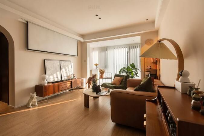 峰光无限装饰小编今日分享的这是一套107平米的现代复古风装修案例,整体硬装以简洁为主, 结合暗藏灯带的呼应,让空间显得更加温馨层次,并在鞋柜旁边摆一盆龟背竹绿植,也让空间显得更加清新舒适。 ...