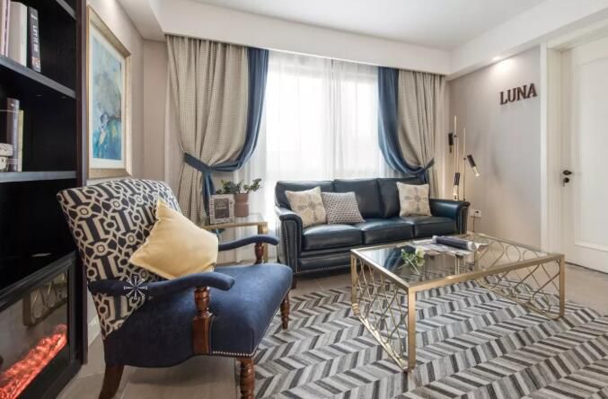 咸阳装修公司小编今日分享的是112平轻奢美式3室2厅,一起来看看吧。 客厅简约的浅色调搭配静谧的蓝色,使色彩有了层次感的同时也有了明暗的对比,为屋主营造出一份宁静安逸的空间感受。 黑色的书柜和隔断,灰色的地砖、白色乳胶漆以及爵士白石材,无论潮流...