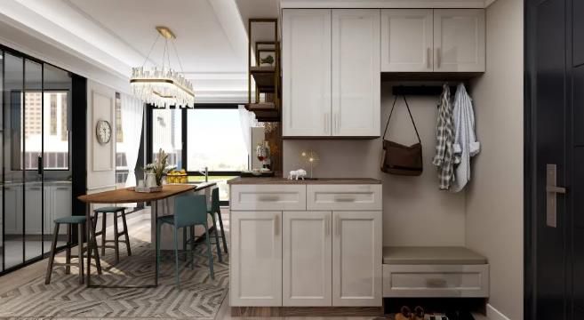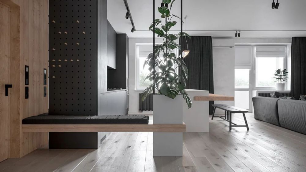 峰光无限带你看装修! 空间通过灰白色系的调和 打造出高级的质感 加上绿色植物的加持和原木色的适当运用 营造出家的温馨与韵致 区别于常规的玄关 门厅采用开放式设计 通过巧妙的方式与公共空间融合 使空间显得更大通达敞亮 达到景致互借的...