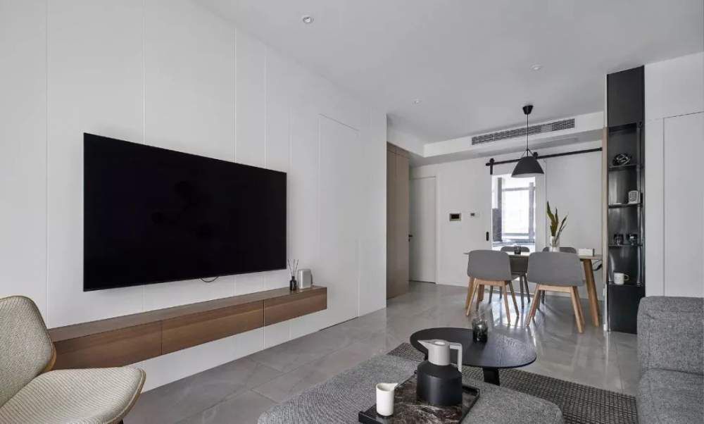 变得格外的明亮宽敞。灰、白、木色的搭配,视觉上干净素雅,让家变成最舒适轻松的归属地。 公共空间以白色和浅灰色为主调,空间的采光也极好,加上极其简洁的设计布置也让空间通透无比。 客厅的角度,客厅电视柜与餐边柜及玄关柜一体打造,整体感很好。餐厅和客厅...