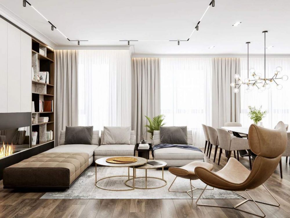 峰光无限带你看设计。 “ 总是爱看钱塘岸边的波澜变化,配以江面和对岸的连绵景色,遂购下这套高层,自然内部修葺也要符对这开阔意境:黄鹤一去不复返,白云千载空悠悠。翱翔万里,来去千年。” 愿望是古典浪漫的,但生活是现代舒适的,功能决定形式...