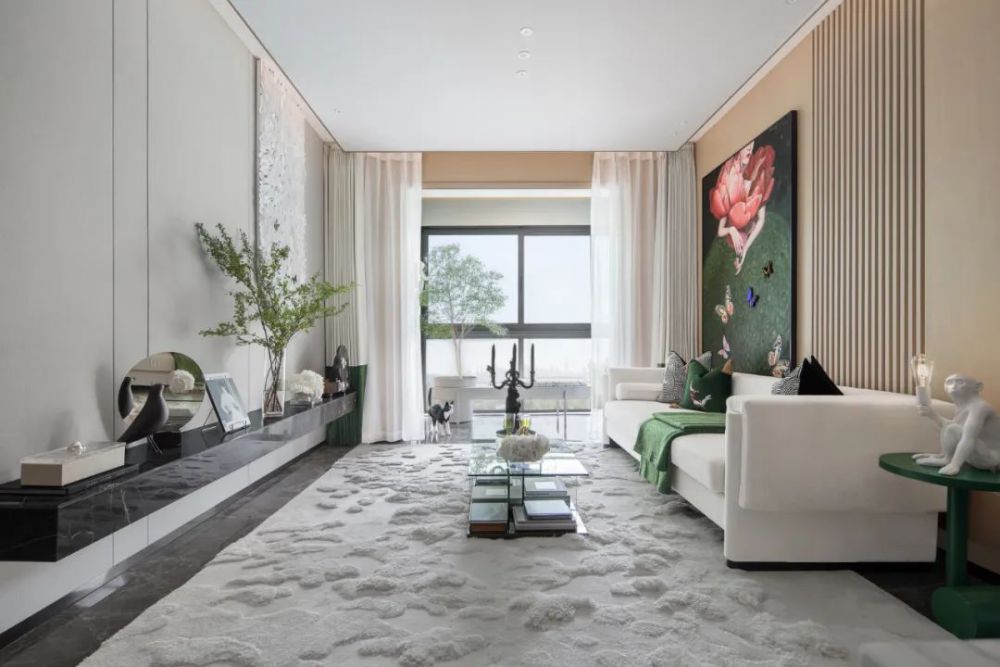 峰光无限带你看设计。 客厅纯净的沙发与飘逸轻盈的纺纱窗帘把空间的灵动微带一丝仙气之感演绎到极致。 客厅弧线流畅而圆滑的家具让空间沉浸在宁静柔和的氛围,配以方格渐变的灰地毯流露清新时尚的感觉。 在这样纯粹的气氛背景下,...