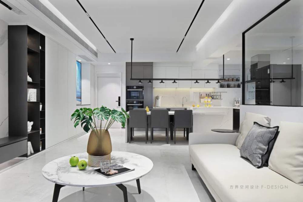 峰光无限带你看设计。 客厅风格极致简约,大理石、木饰面,皮质,丝绒等多元材质巧妙混搭与组合,凸显空间质感与奢华,精致的软装浓缩着意想不到的功能与细节,打造出深受人们喜爱的现代家居,从而彰显一种高品质的生活方式。 厨房空间结构简洁...
