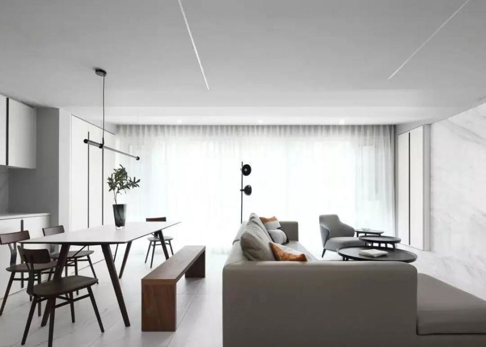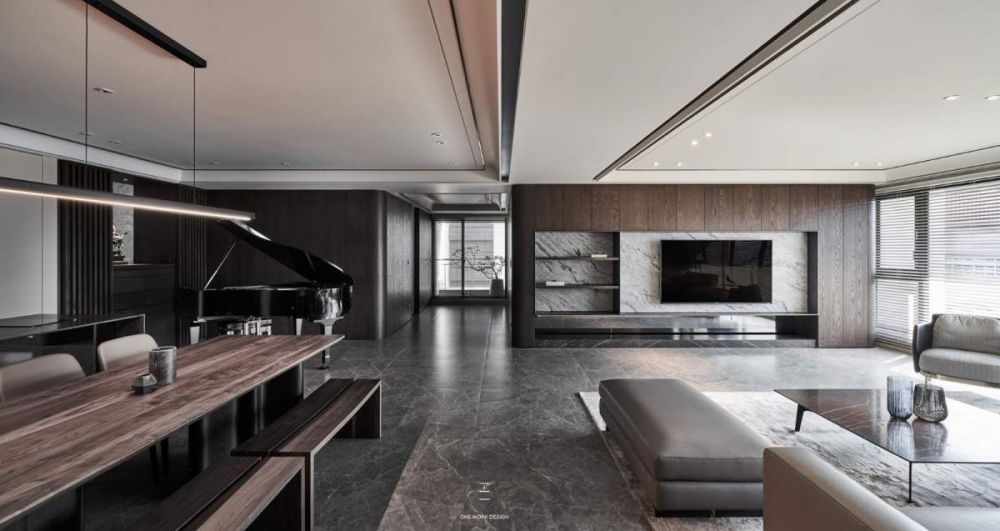 现代质感大宅,咸阳装饰公司精彩案例欣赏 玄关处藉由深色隔栅的铺陈以及气氛灯光的设计,让玄关成为回家后转换心情的停顿处。 跨过分界玄关与室内的金属跨拱,来到的是明亮的客餐厅空间,更有转换场域后视觉放大的效果。 ...