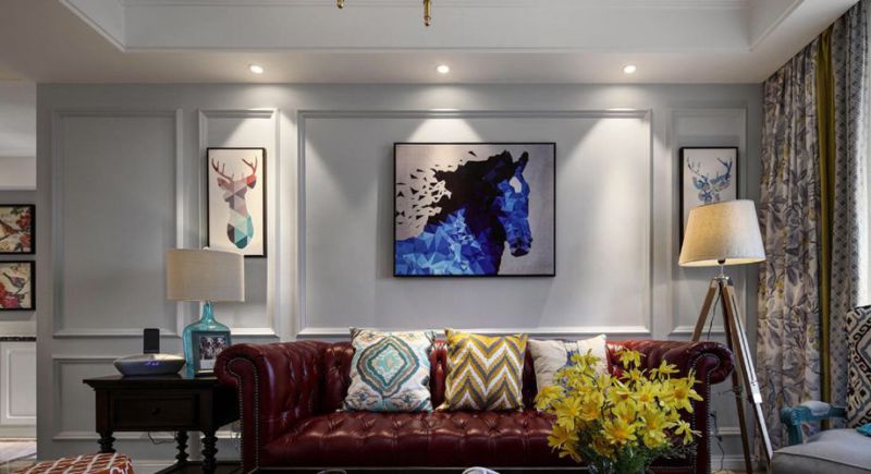 这是由咸阳优秀设计师王珂带来的美式三室一厅案例,其整体家具兼具美式的厚重品质感与现代的简约明快感,更为年轻时尚,近年大热的几何化风格挂画个性十足,明黄的点缀,让浓烈的色彩也变得轻快,黑色的茶几增加了空间的色彩对比,整体配色在灰色墙面与米色地面的衬托下显得愈发浓郁,下...