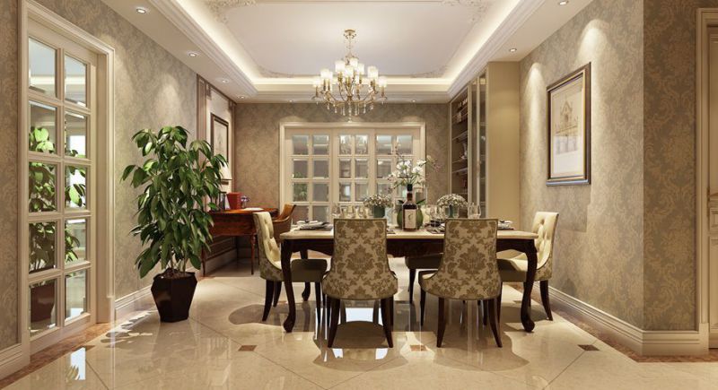 整个客厅空间敞亮,色彩搭配和谐温馨,时尚且饱有内涵。银灰色的家具色调与高雅的沙发背景墙互相辉映,骨子里透露出一股高贵的格调,每一处都恰到好处,引人遐想。 餐厅主要还是以古典的欧式风格为主,并融入了现代化元素。黑白相衬的餐桌家具,以及墙上颇有古典色彩镜子,无...